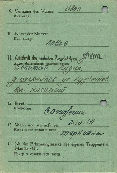 Военнопленные, трофейные карточки. Киевская обл.