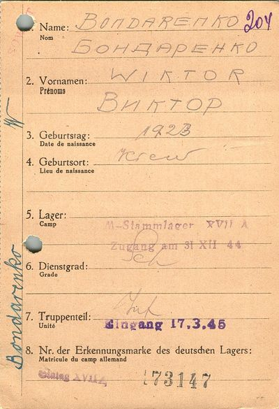 Военнопленные, трофейные карточки. Киевская обл.