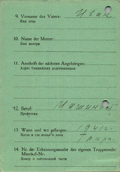Военнопленные, трофейные карточки. Киевская обл.