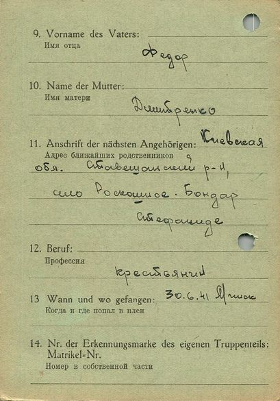 Военнопленные, трофейные карточки. Киевская обл.