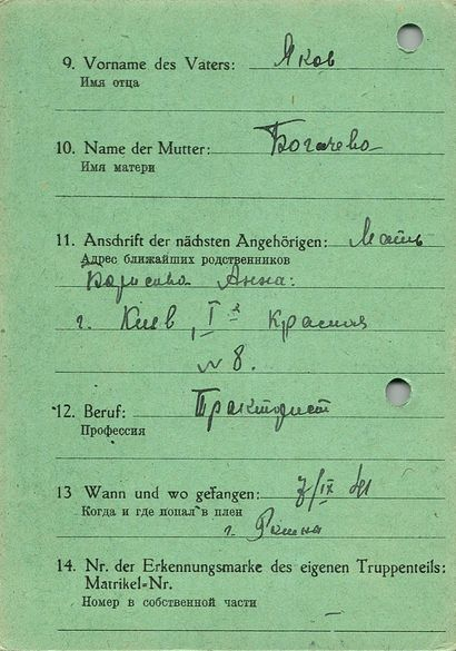 Военнопленные, трофейные карточки. Киевская обл.