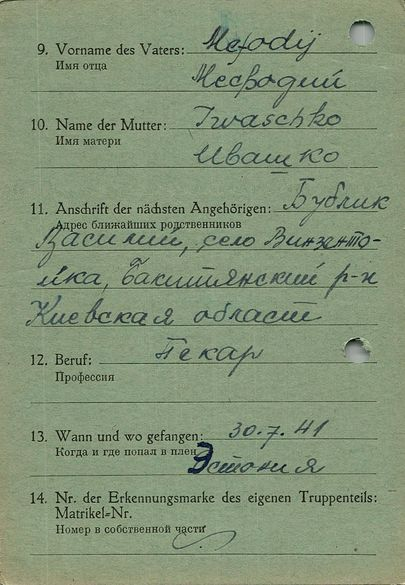 Военнопленные, трофейные карточки. Киевская обл.