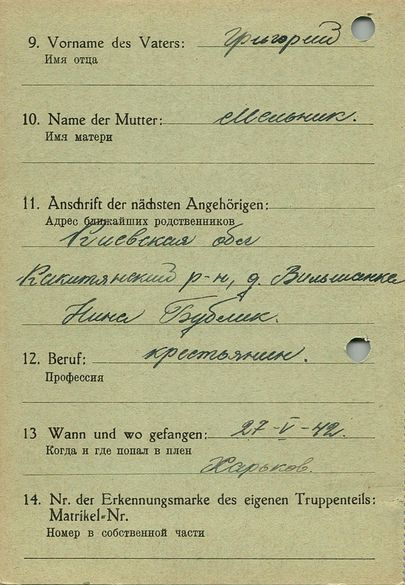 Военнопленные, трофейные карточки. Киевская обл.