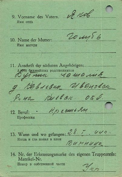 Военнопленные, трофейные карточки. Киевская обл.
