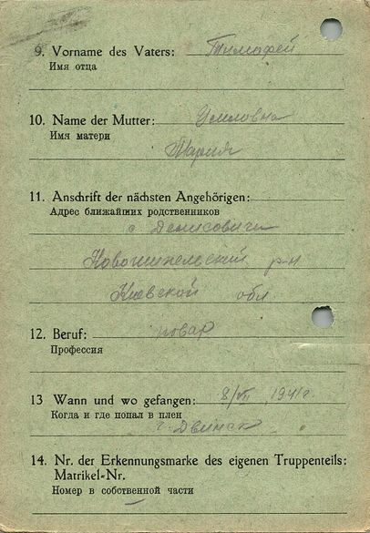 Военнопленные, трофейные карточки. Киевская обл.