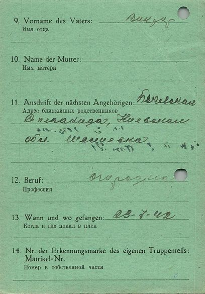 Военнопленные, трофейные карточки. Киевская обл.