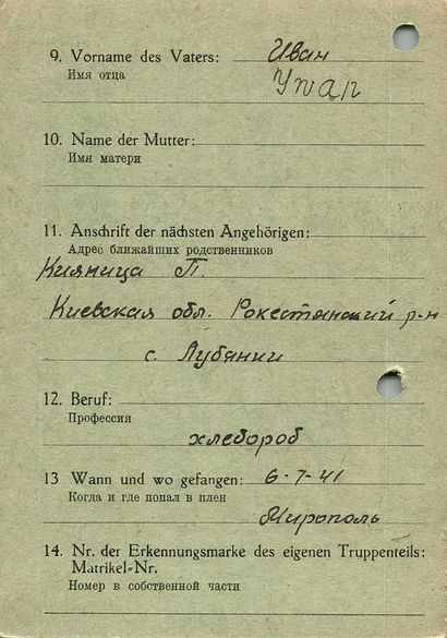 Военнопленные, трофейные карточки. Киевская обл.