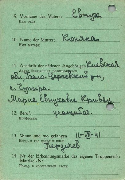 Военнопленные, трофейные карточки. Киевская обл.