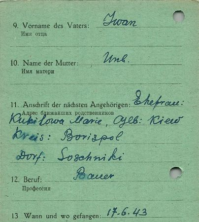 Военнопленные, трофейные карточки. Киевская обл.