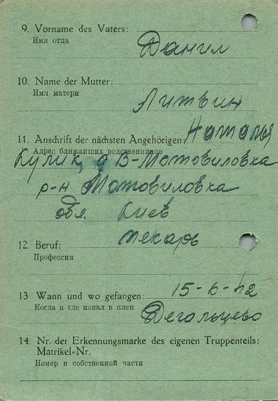Военнопленные, трофейные карточки. Киевская обл.