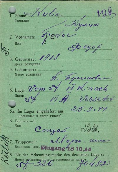 Военнопленные, трофейные карточки. Киевская обл.