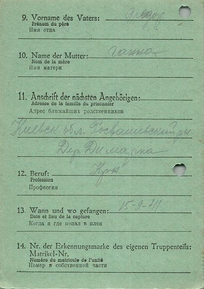 Военнопленные, трофейные карточки. Киевская обл.