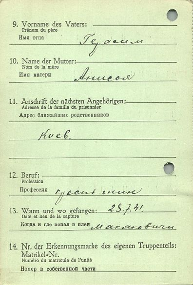 Военнопленные, трофейные карточки. Киевская обл.