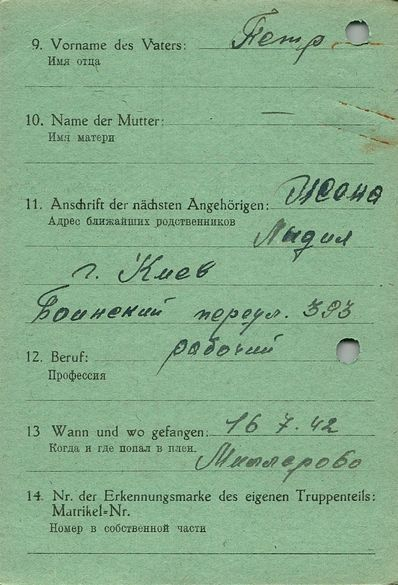 Военнопленные, трофейные карточки. Киевская обл.