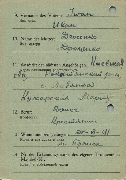 Военнопленные, трофейные карточки. Киевская обл.