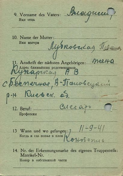 Военнопленные, трофейные карточки. Киевская обл.