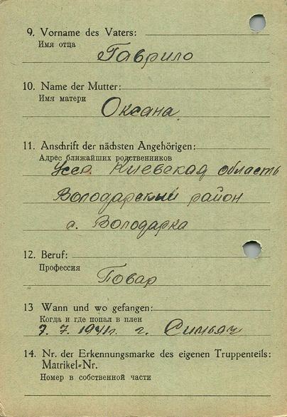 Военнопленные, трофейные карточки. Киевская обл.
