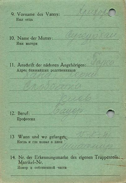 Военнопленные, трофейные карточки. Киевская обл.