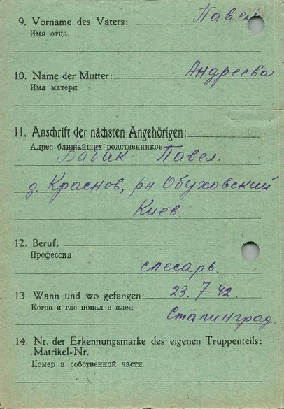 Военнопленные, трофейные карточки. Киевская обл.