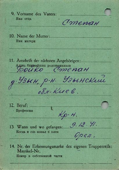 Военнопленные, трофейные карточки. Киевская обл.