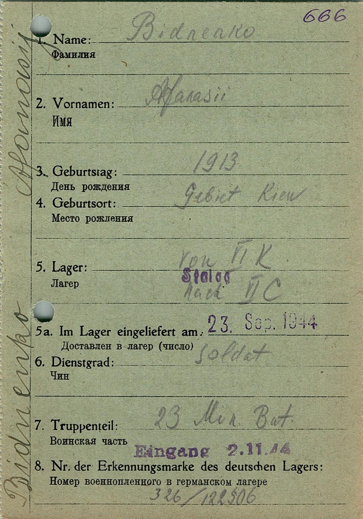 Военнопленные, трофейные карточки. Киевская обл.