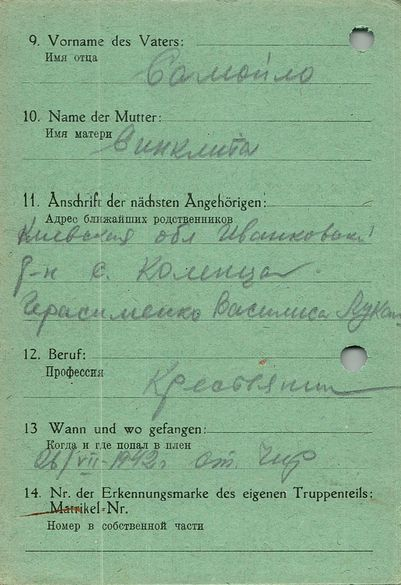 Военнопленные, трофейные карточки. Киевская обл.