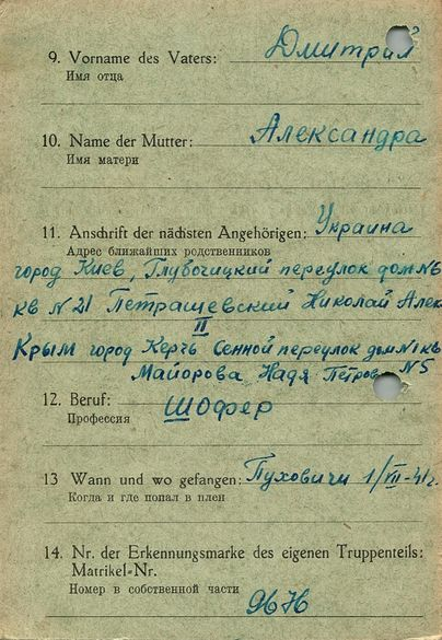 Военнопленные, трофейные карточки. Киевская обл.