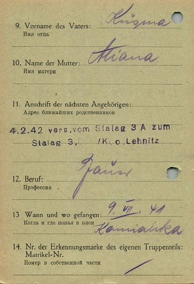 Военнопленные, трофейные карточки. Киевская обл.