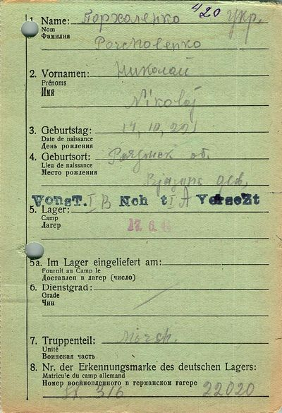 Военнопленные, трофейные карточки. Киевская обл.