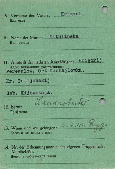 Военнопленные, трофейные карточки. Киевская обл.