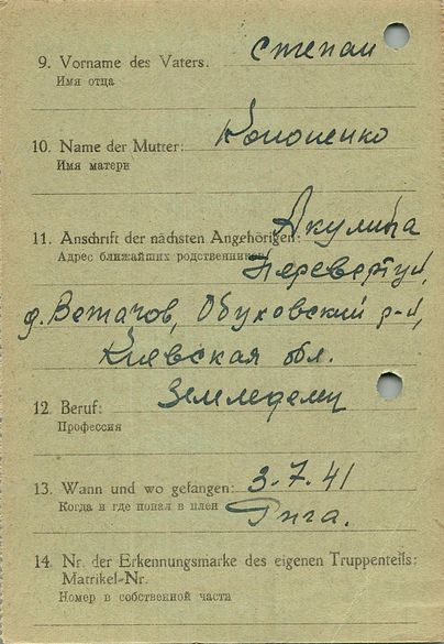 Военнопленные, трофейные карточки. Киевская обл.