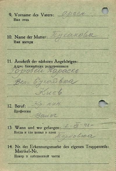 Военнопленные, трофейные карточки. Киевская обл.