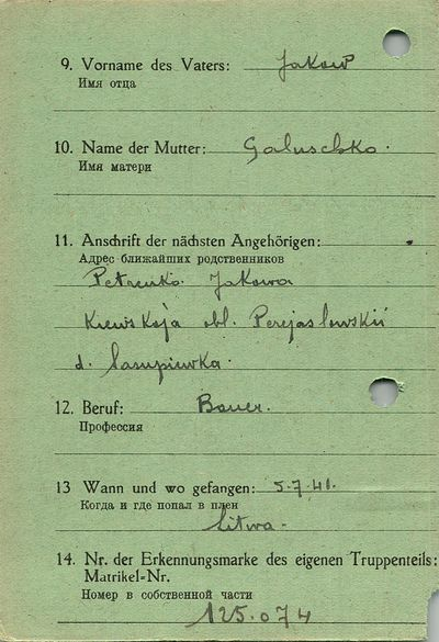 Военнопленные, трофейные карточки. Киевская обл.