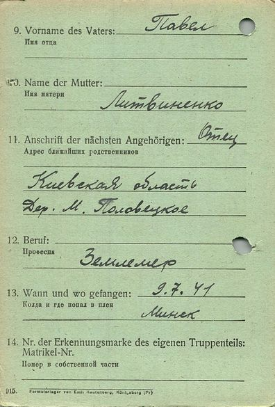 Военнопленные, трофейные карточки. Киевская обл.