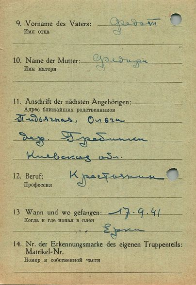 Военнопленные, трофейные карточки. Киевская обл.