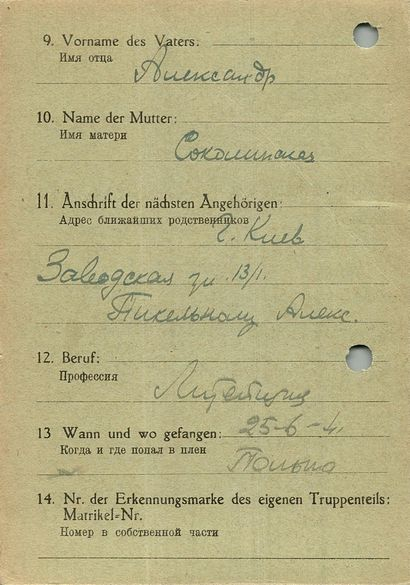 Военнопленные, трофейные карточки. Киевская обл.