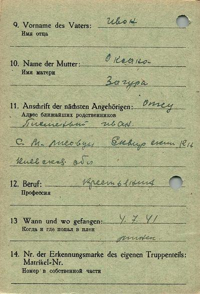 Военнопленные, трофейные карточки. Киевская обл.