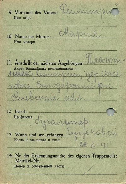 Военнопленные, трофейные карточки. Киевская обл.