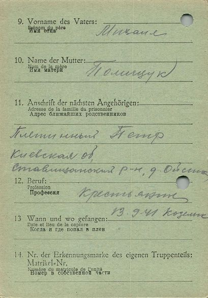 Военнопленные, трофейные карточки. Киевская обл.