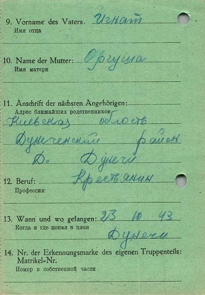 Военнопленные, трофейные карточки. Киевская обл.