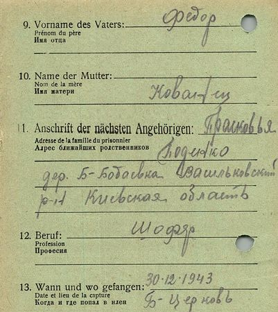 Военнопленные, трофейные карточки. Киевская обл.