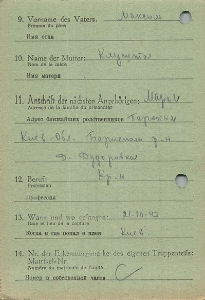 Военнопленные, трофейные карточки. Киевская обл.