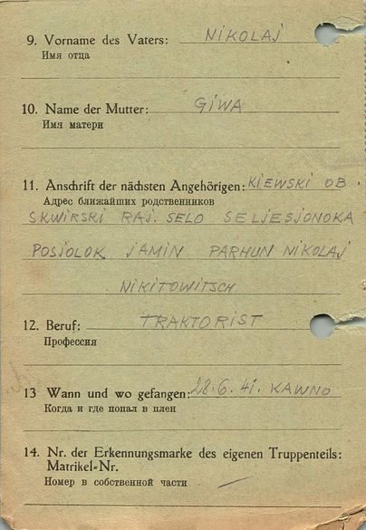 Военнопленные, трофейные карточки. Киевская обл.