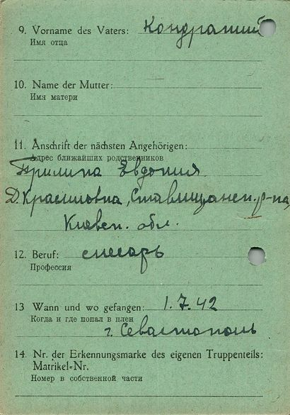 Военнопленные, трофейные карточки. Киевская обл.