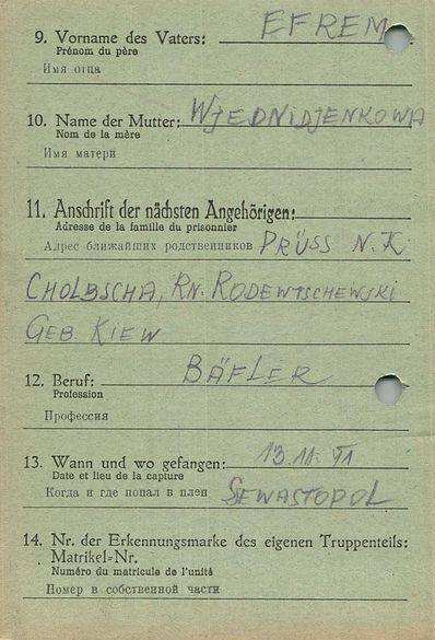 Военнопленные, трофейные карточки. Киевская обл.