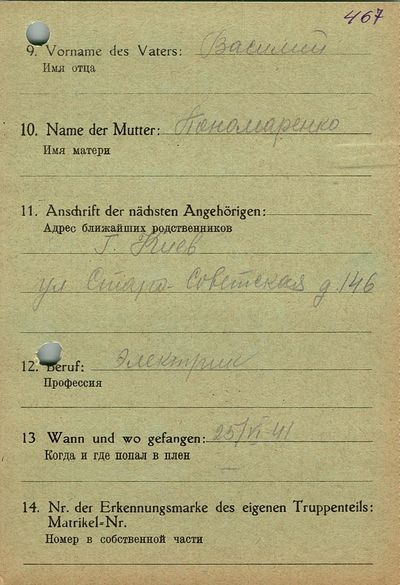Военнопленные, трофейные карточки. Киевская обл.