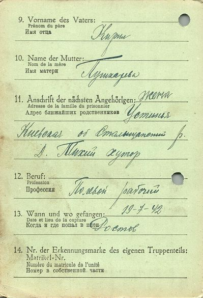 Военнопленные, трофейные карточки. Киевская обл.