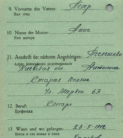 Военнопленные, трофейные карточки. Киевская обл.