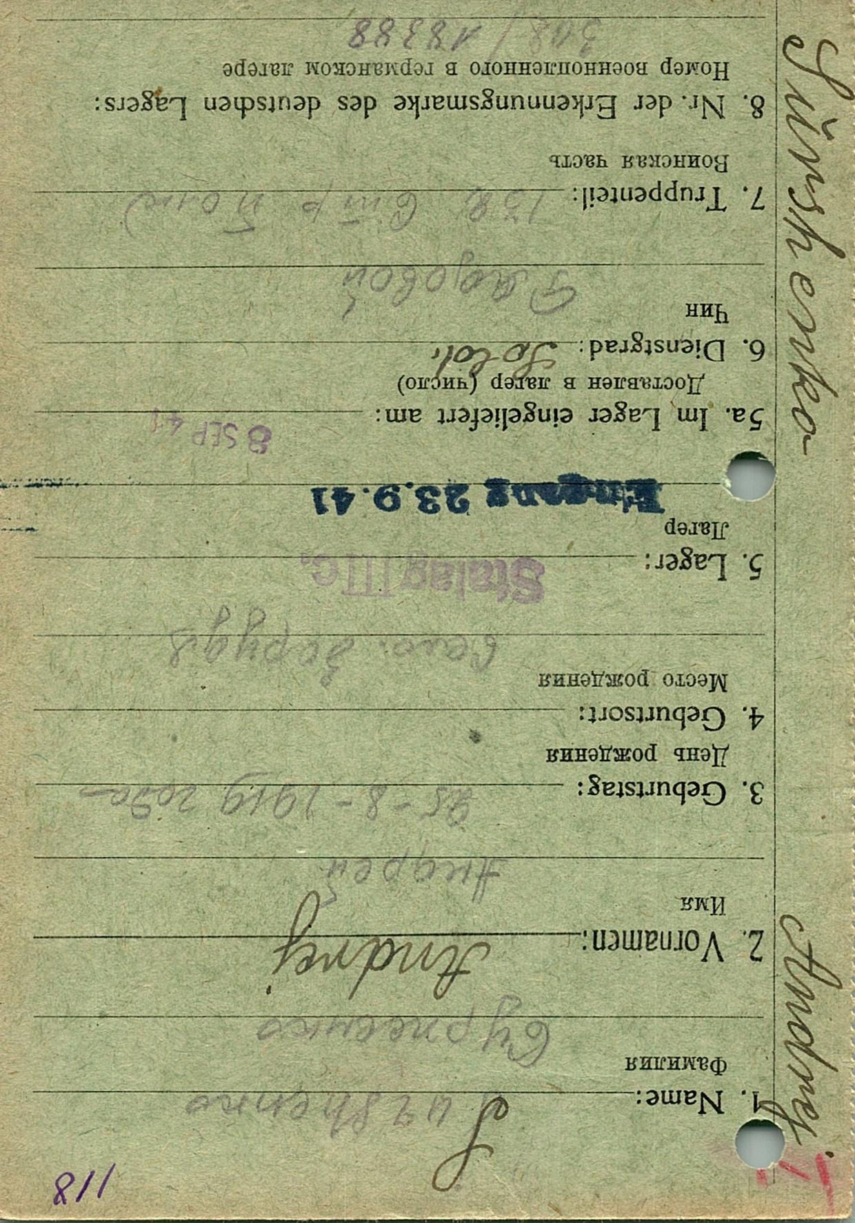 Военнопленные, трофейные карточки. Киевская обл.