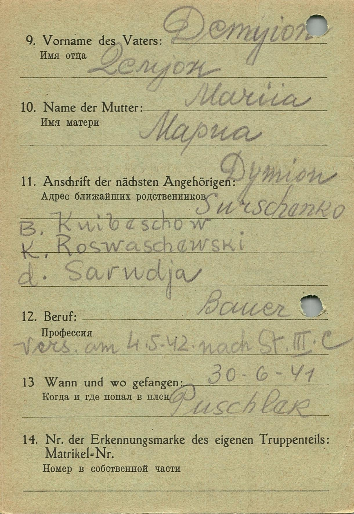 Военнопленные, трофейные карточки. Киевская обл.
